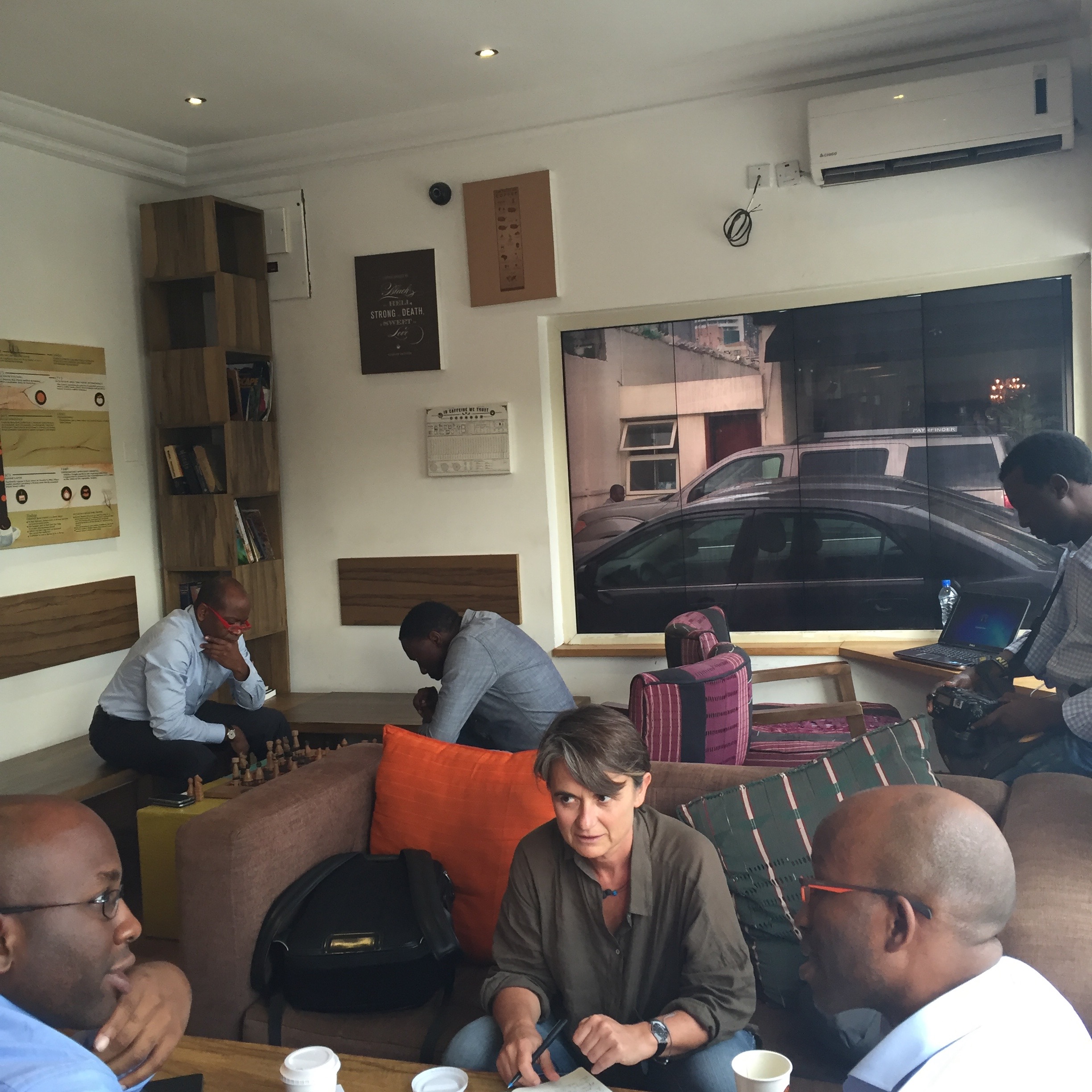 Its 18:31, a rainy day in Lagos… It’s starting to fill in…seated next to my table are the 2 brothers who opened the cafe being interviewed by a lady…guess french from her accent….soft jazz is playing in the background, two men are seated playing chess and I am writing you, perfection in the little little things!..x